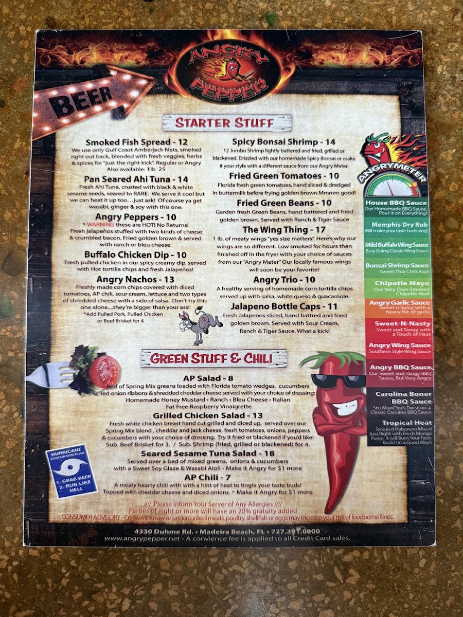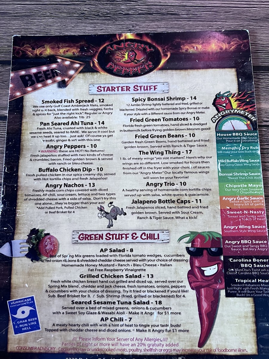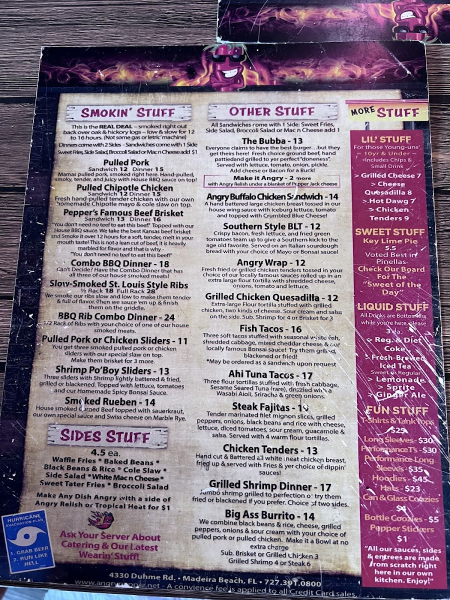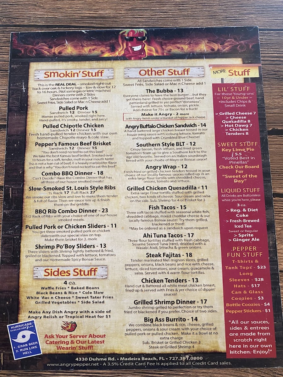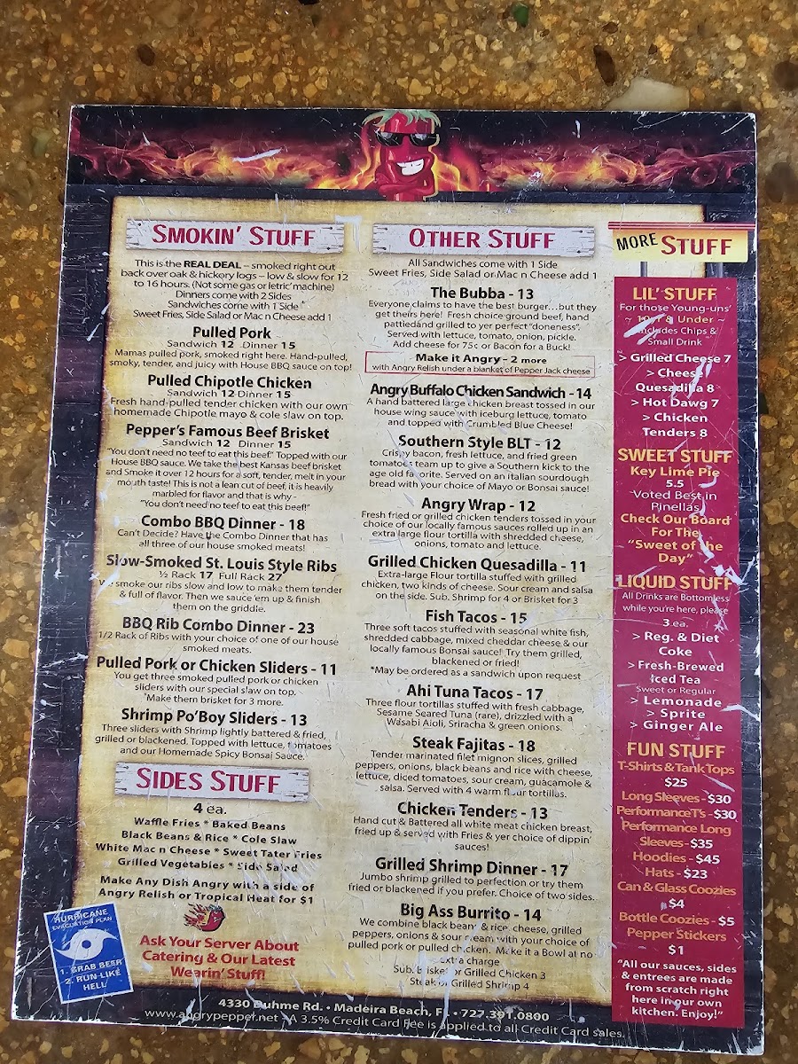 Welcome to Angry Pepper, Madeira Beach's hidden gem, where flavors come alive and every dish tells a story. Nestled at 4330 Duhme Rd #2809, this vibrant bar and eatery champions excellent service and hearty portions, making it a beloved spot among locals and visitors alike.